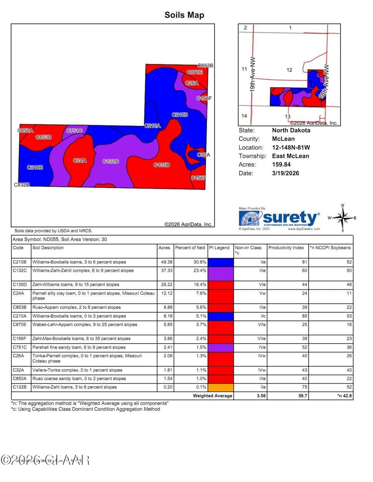 Online Auction Only starts at 9am CST on May 5, 2026 ends 2pm CST on May 7, 2026. Parcel 2 - 160+/- Acres Located directly north of Parcel 1, Parcel 2 offers an appealing mix of farm, ranch, and recreational opportunities. This parcel has a Soil Productivity Index of 57.8 and an NCCPI of 42.8. It is partly fenced, currently being hayed, and could be broken up nicely for a variety of uses. For hunters, this tract is especially attractive thanks to its rolling terrain and a nice cattail wetland in the center, creating natural cover, bedding areas, and wildlife movement. FSA records identify Tract 4810 as containing 156.33 farmland acres, 70.42 cropland acres, and 70.42 DCP cropland acres. The DCP crop data for Tract 4810 includes 2.50 base acres of wheat with a PLC yield of 27 and 6.30 base acres of oats with a PLC yield of 44, for a total of 8.80 base acres. FSA also notes that this tract contains a wetland or farmed wetland, reinforcing the parcel's strong wildlife and habitat appeal. Any mineral rights owned by seller will be retained by seller.